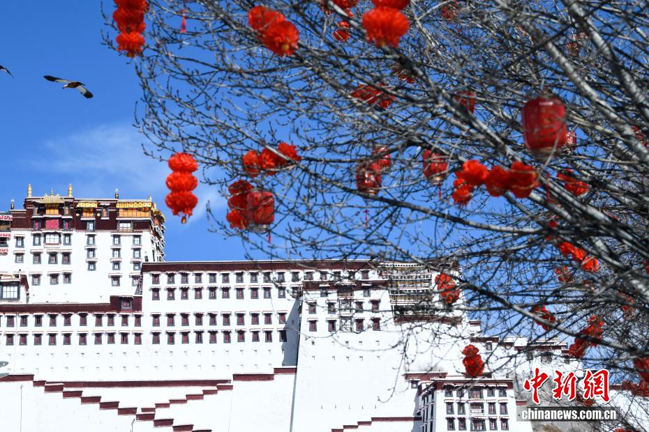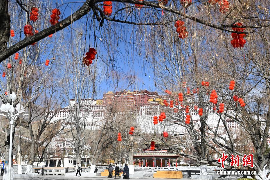 As the Spring Festival and Losar approach, the streets and alleys of Lhasa have been elaborately decorated with red lanterns, imbuing the area with a vibrant and celebratory ambiance.